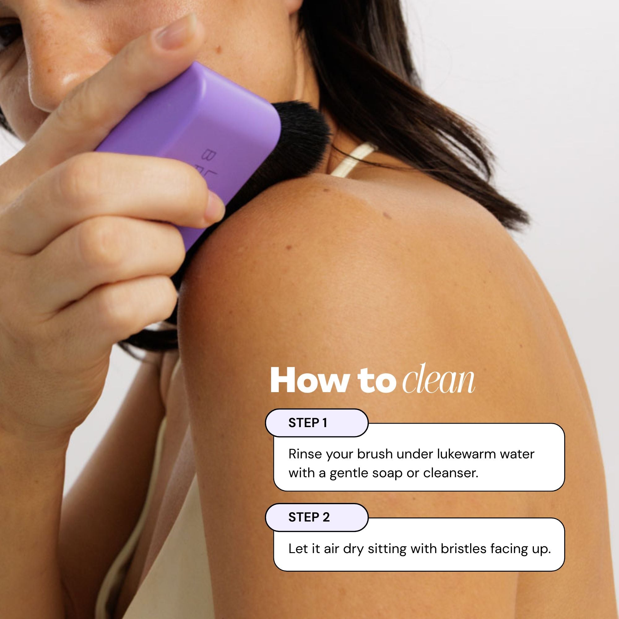 Whether it’s the last step for a flawless finish, or the secret behind your subtle, bronze-y contour, there’s no beating the blend on our vegan kabuki brush. Designed for face and body, with bristles that hug your body’s natural curves, it’s the perfect tool for a seamless finish on the tricky spots – knees, hands and hairlines love to see us coming.